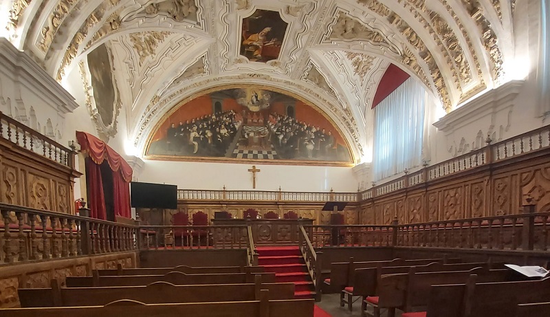 Y el escenario, precioso, también era impresionante: el aula magna de la Universidad Pontificia.