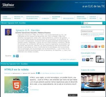 Llevo colaborando aproximadamente año y medio con el blog A un CLIC de las TIC, el blog de la Unidad de Grandes Clientes de Telefónica, un blog dedicado a tecnología e innovación, y al cual he hecho referencia con frecuencia en el apartado de Colaboraciones. La propia colaboración con el blog, el formar parte de ese proyecto, el compartir reuniones con otros compañeros muy interesantes y con el enorme equipo de comunicación 2.0 de Empresas, es ya de por sí recompensa suficiente al tiempo dedicado.