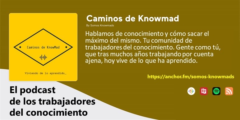 Caminos de Knowmad es un podcast destinado a los trabajadores del conocimiento, muy especialmente dirigido a los trabajadores independientes o que han pasado de trabajar por cuenta ajena a hacerlo por cuenta propia. Hablamos de reinvención personal y profesional, de habilidades y herramientas para el trabajador del conocimiento.